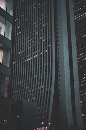 An architectural waveform, bending vertically under its own frequency, lit from within like a machine humming in its slumber.