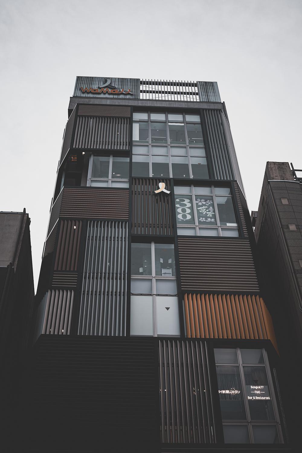 A tower of fragments, a stitched-together surface of light, texture, branding, and silence. Design as signal, façade as frequency.