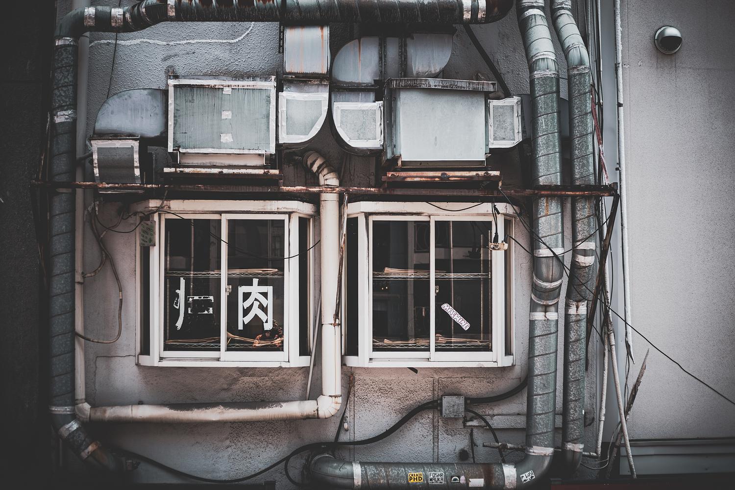 Pipes that provide the pulse, where architecture beats and breathes, here it leaks from behind the curtain.